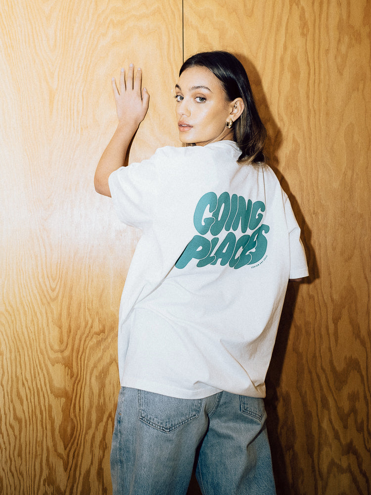 Short sleeve Going Places graphic tee. Unisex sizing, for a more oversized fit size up. Made in Portugal, printed in the UK.